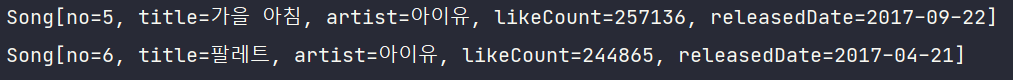 new Song(6, "팔레트", "아이유", 244_865, LocalDate.of(2017, 4,21)));