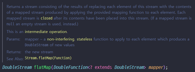 flatMap과 다르게Function<? super T,? extends DoubleStream> mapper를 파라미터로 전달한다.