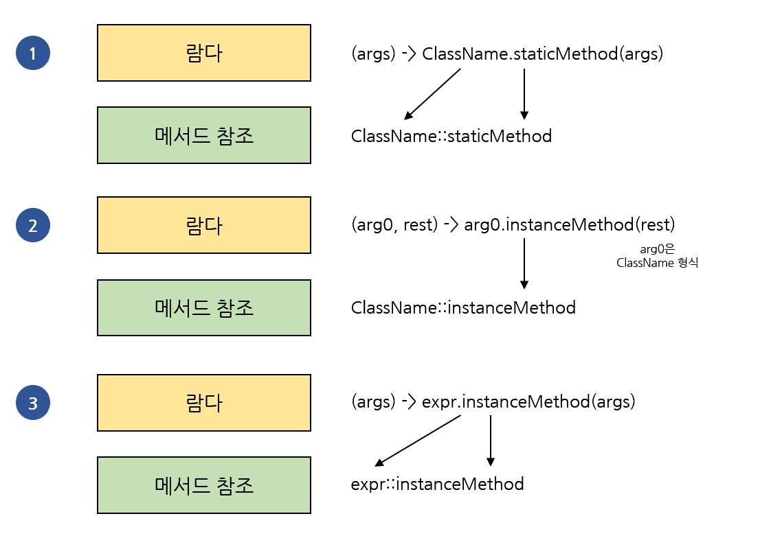 - 전달 : 메서드 인수로 전달하거나 변수로 저장할 수 있다.