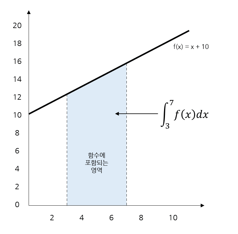 $\int_3^7f(x)dx,또는,\int_3^7(x+10)dx$
