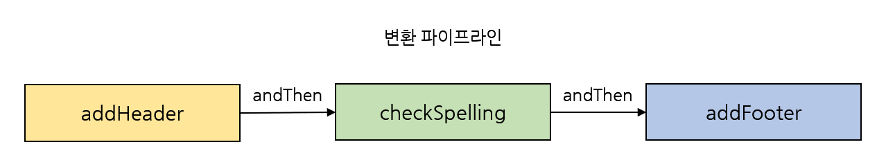 Function<String, String> transformationPipeline = addHeader.andThen(Letter::checkSpelling)
