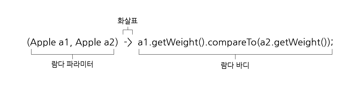 (Apple a1, Apple a2) -> a1.getWeight().compareTo(a2.getWeight())
